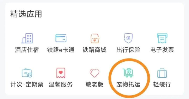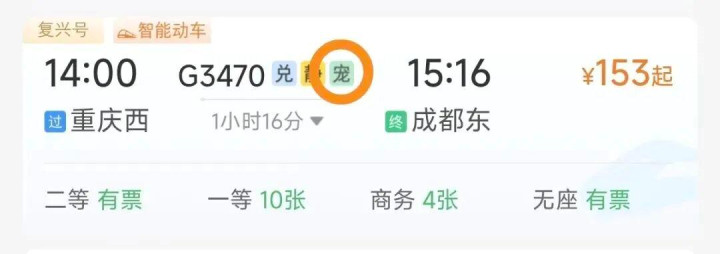 标注“宠”字:代表可以办理“宠物托运”服务。旅客购买该趟列车的火车票后,在铁路12306App进入“宠物托运”模块,按步骤进行操作。