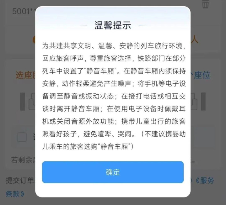 标注“静”字:代表该趟列车设有“静音车厢”,乘车时需要遵守静音约定。
