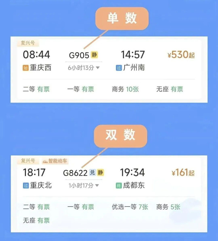 车次单双看方向